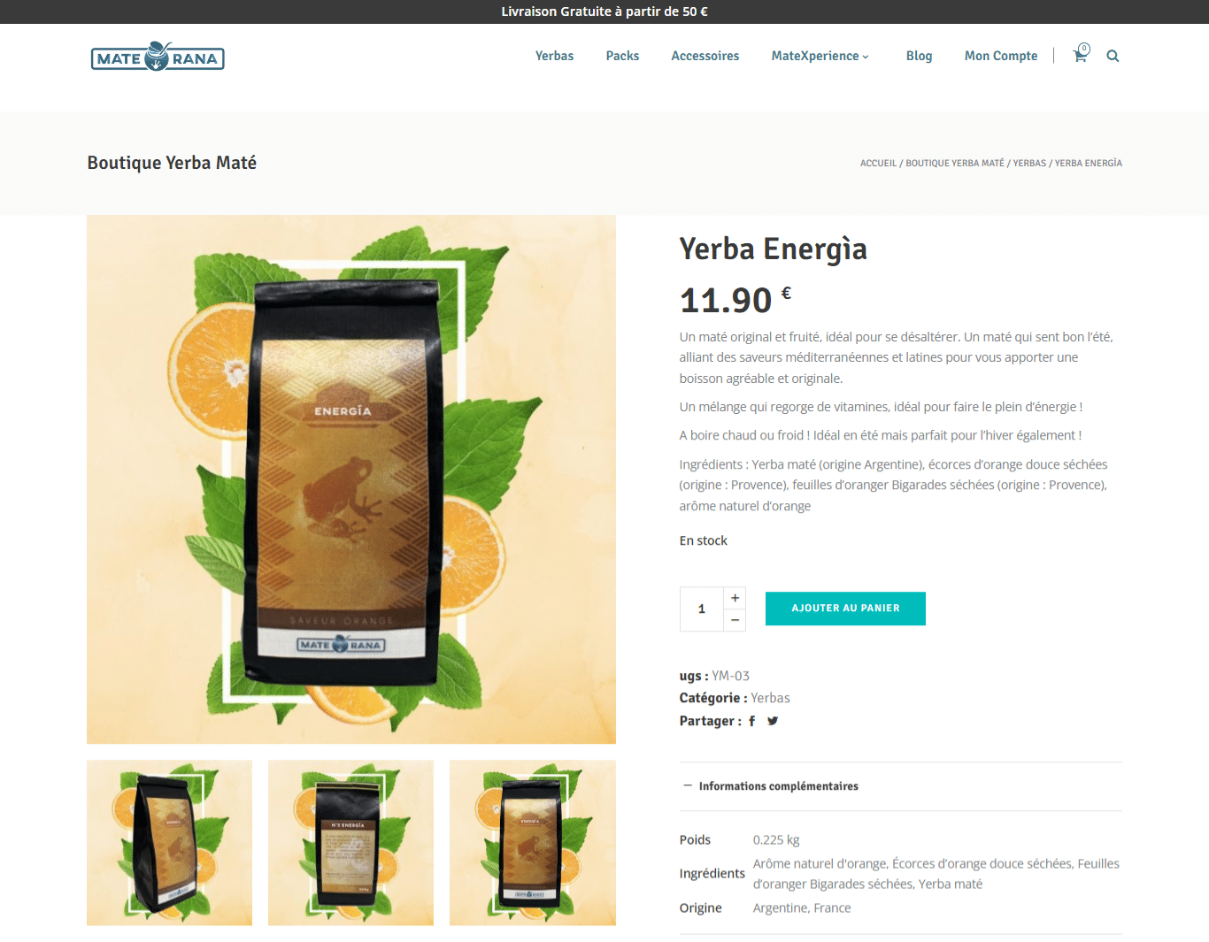 Présentation du projet dans le cadre d'un site e-commerce de vente de Maté